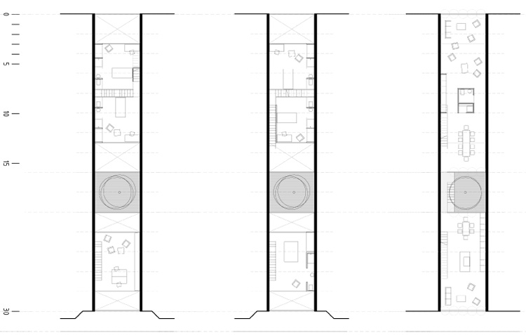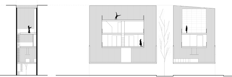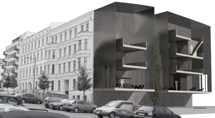 Two experimental houses in a 30x5m plot in between buildings in Berlin.